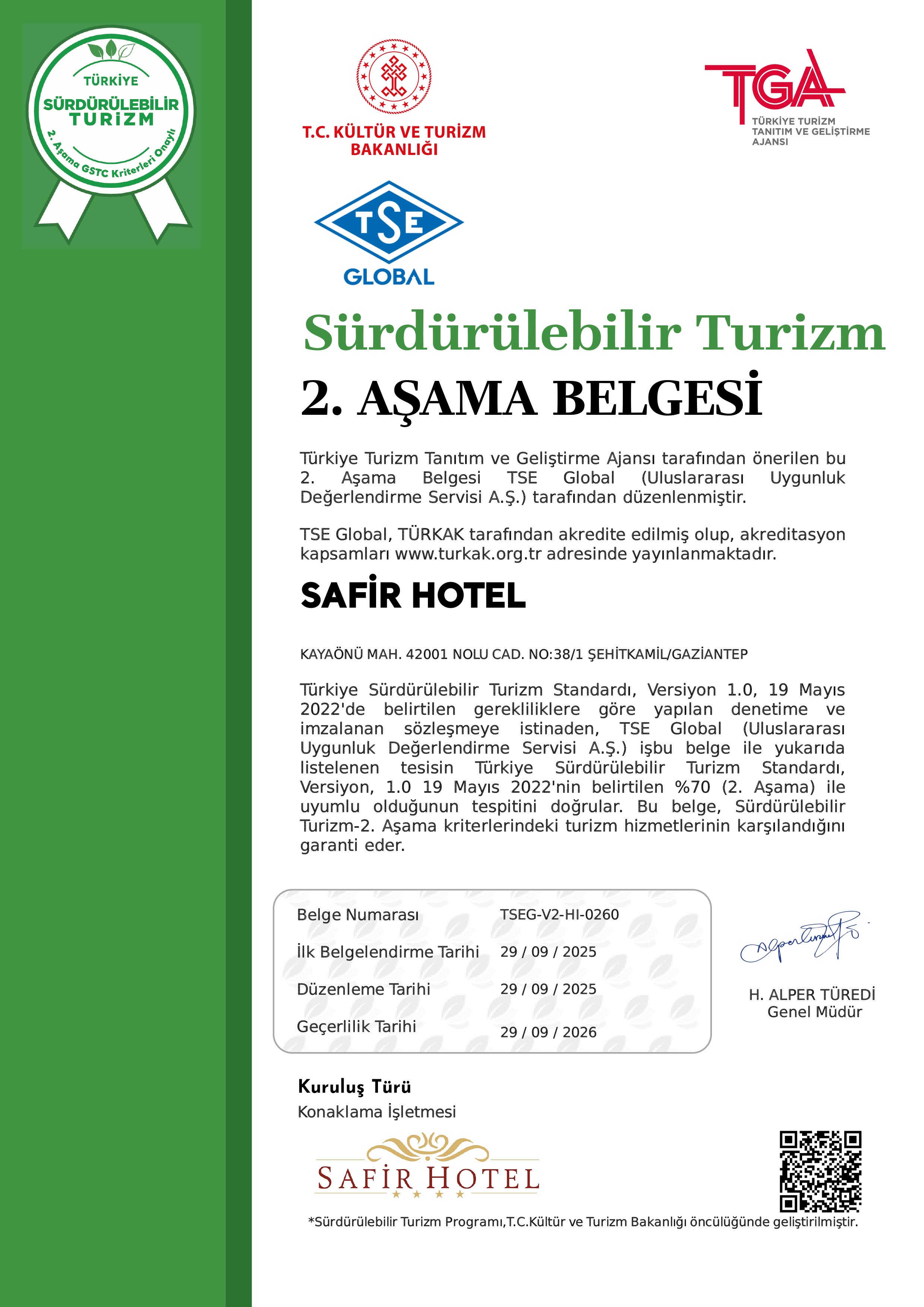 Our hotel, which is integrated with the cultural texture of the region, is located on the historical Silk Road and offers superior comfort to our valued guests in the heart of the city. Safir Hotel, which is shaped by carefully considering every detail from its design to its service, brings together the modern architecture and contemporary hotel management understanding with the historical and cultural richness of Gaziantep.